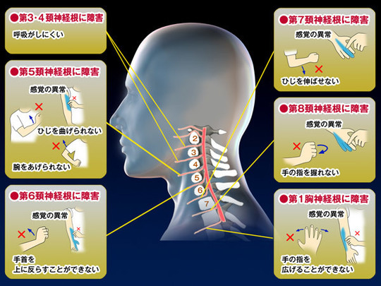 このようにどこの頸椎・神経が炎症を起こしてるかで